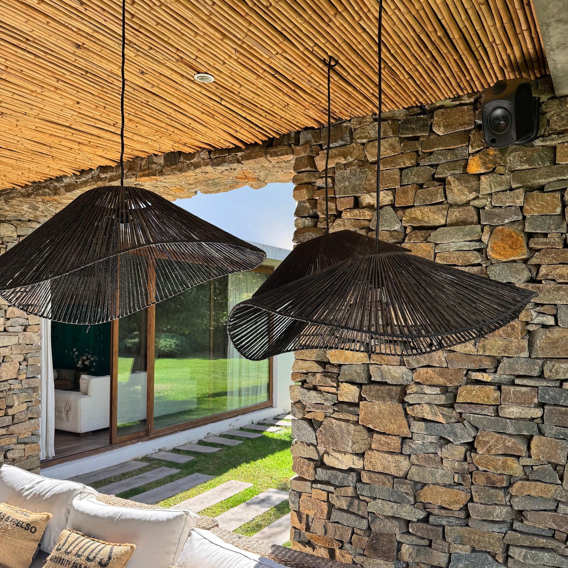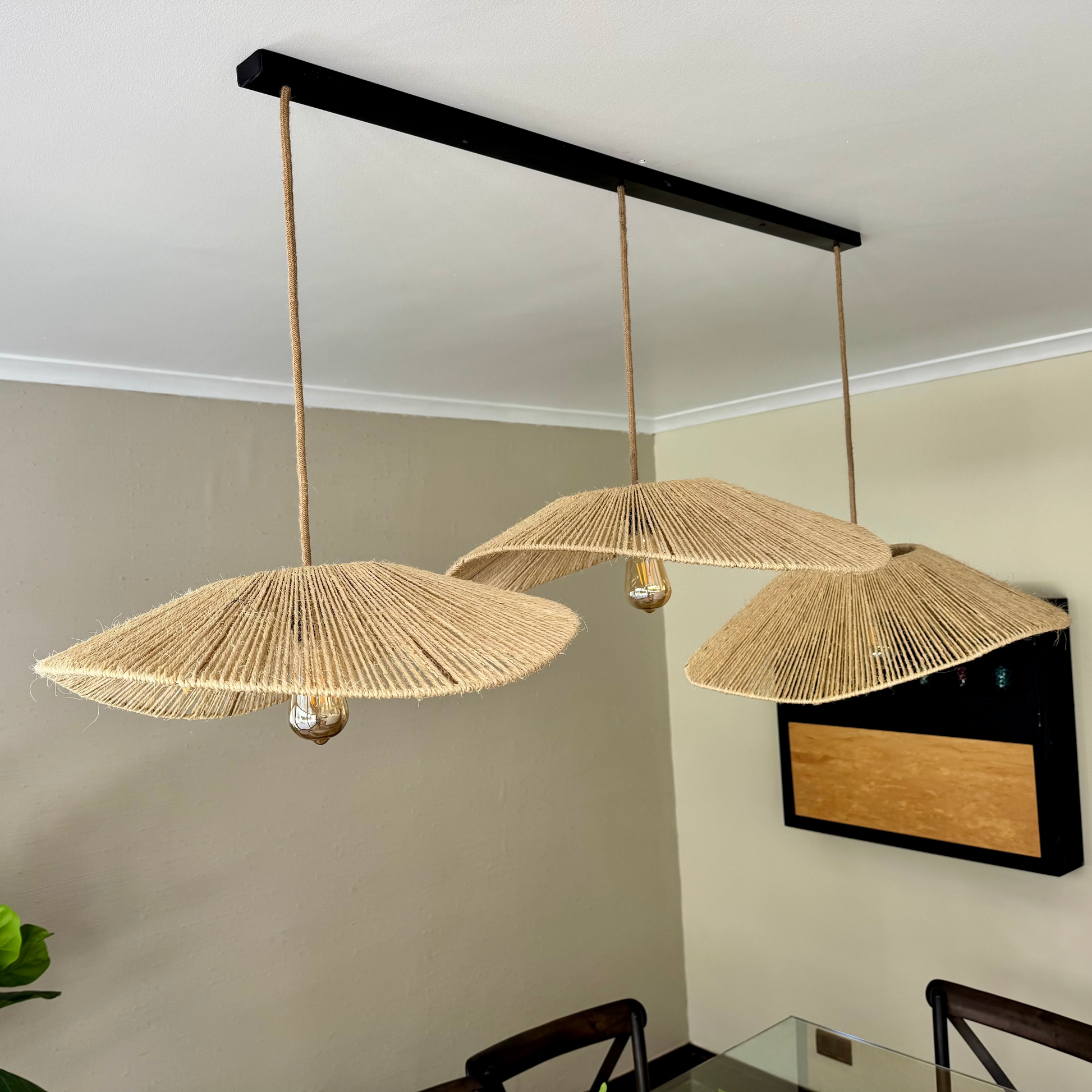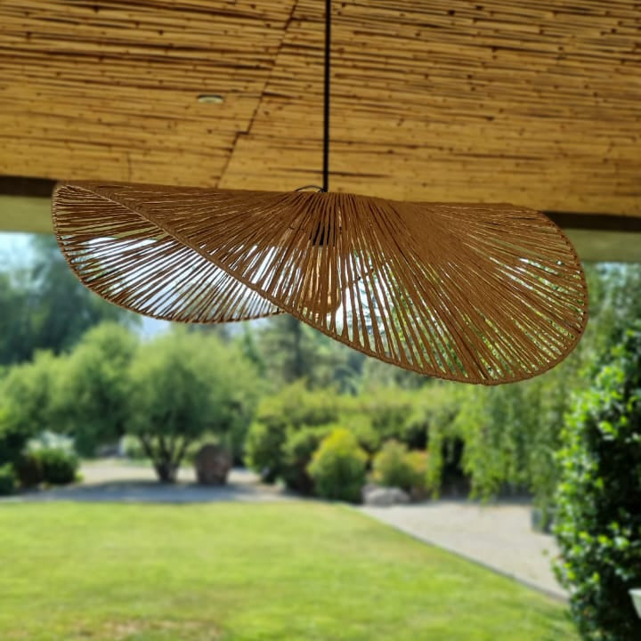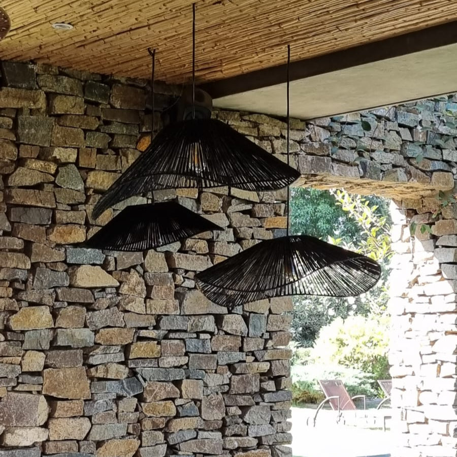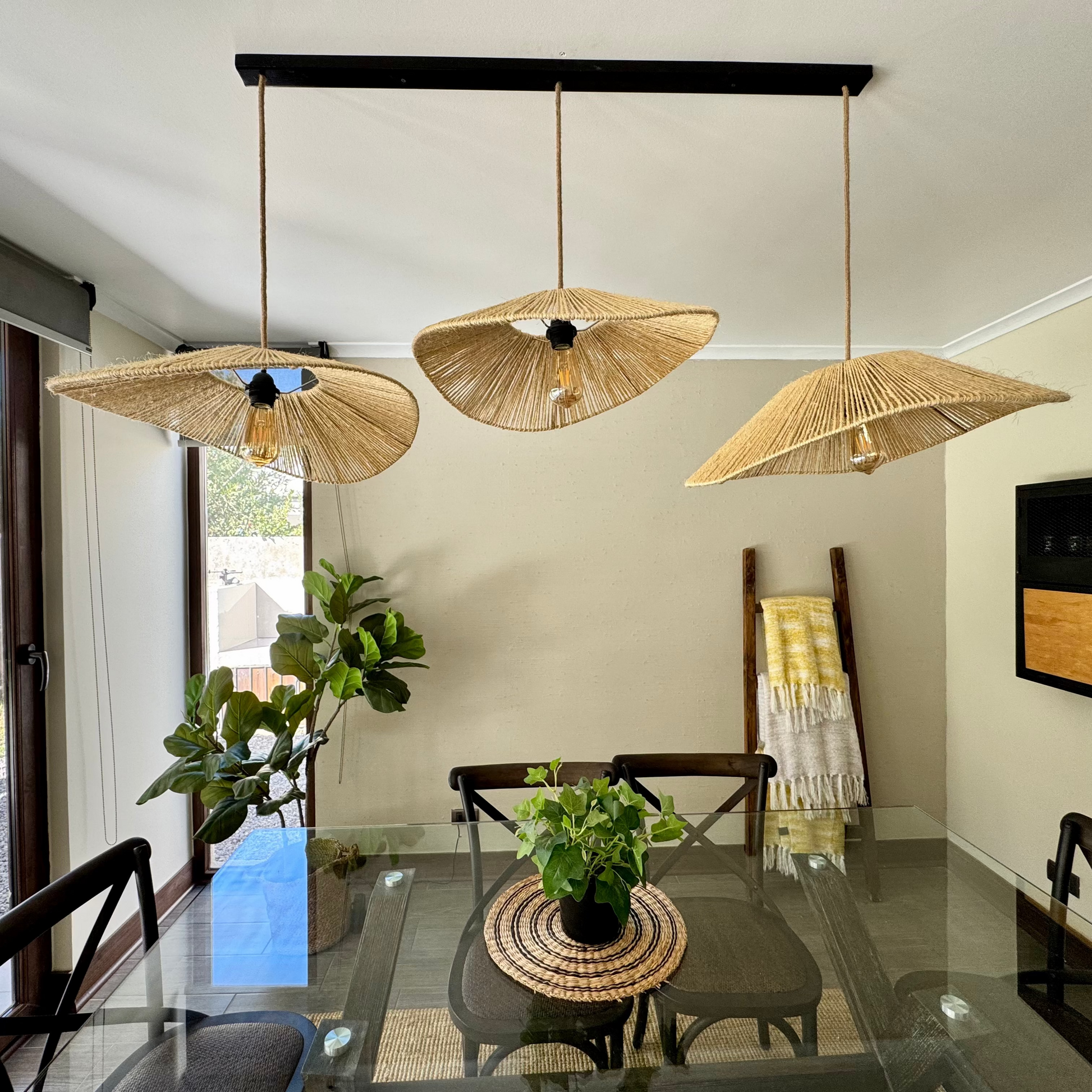 Incluye cable forrado en yute (1,5mts), ampolleta y baldaquín metálico para tapar conexión eléctrica en el techo