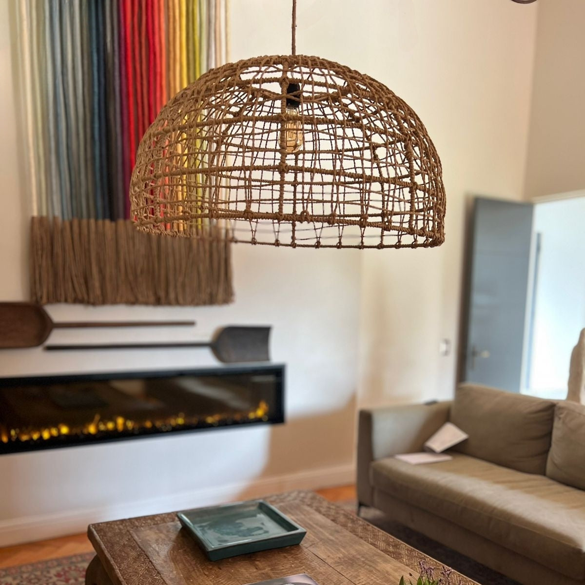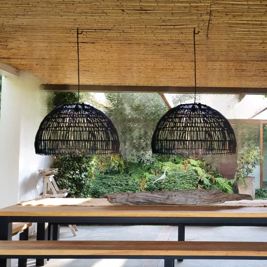 Incluye cable forrado en yute (1,5mts), ampolleta y baldaquín metálico para tapar conexión eléctrica en el techo