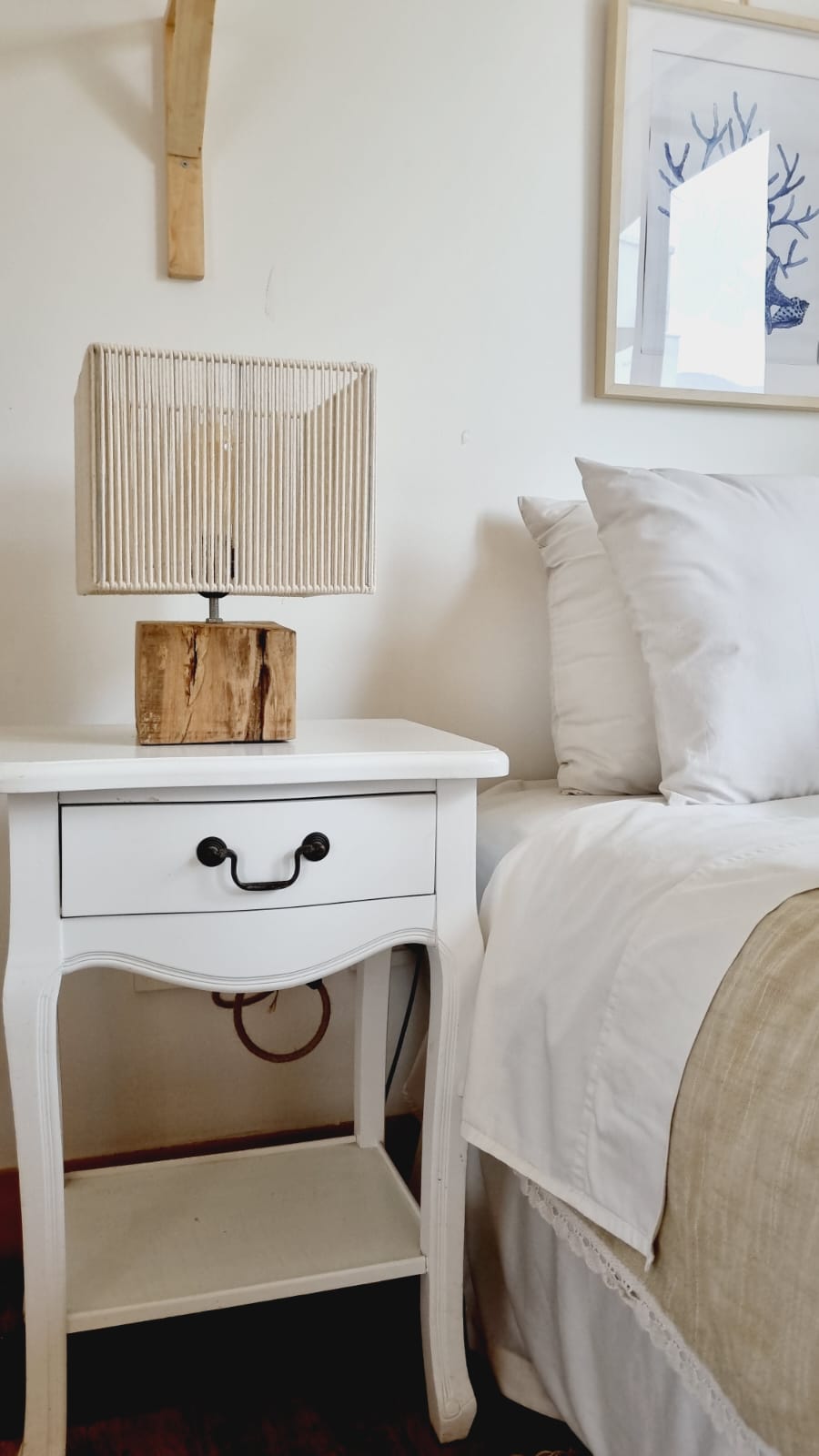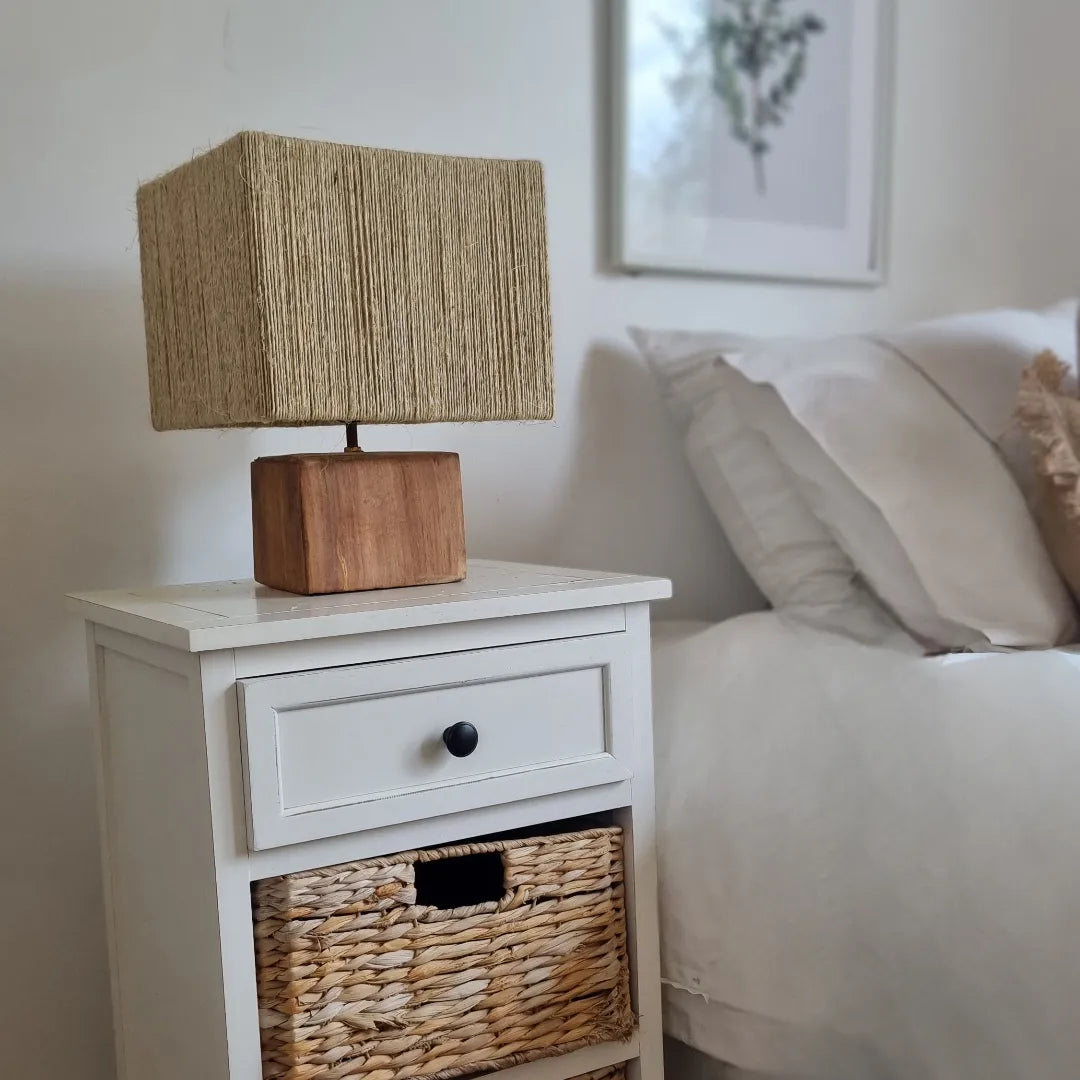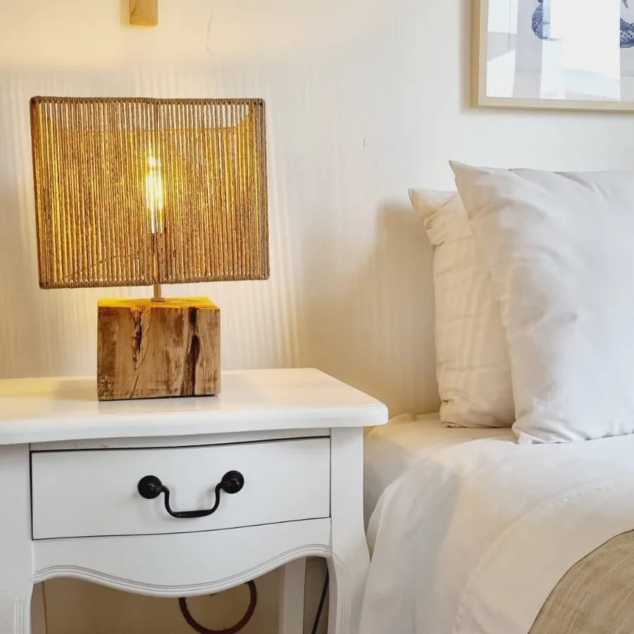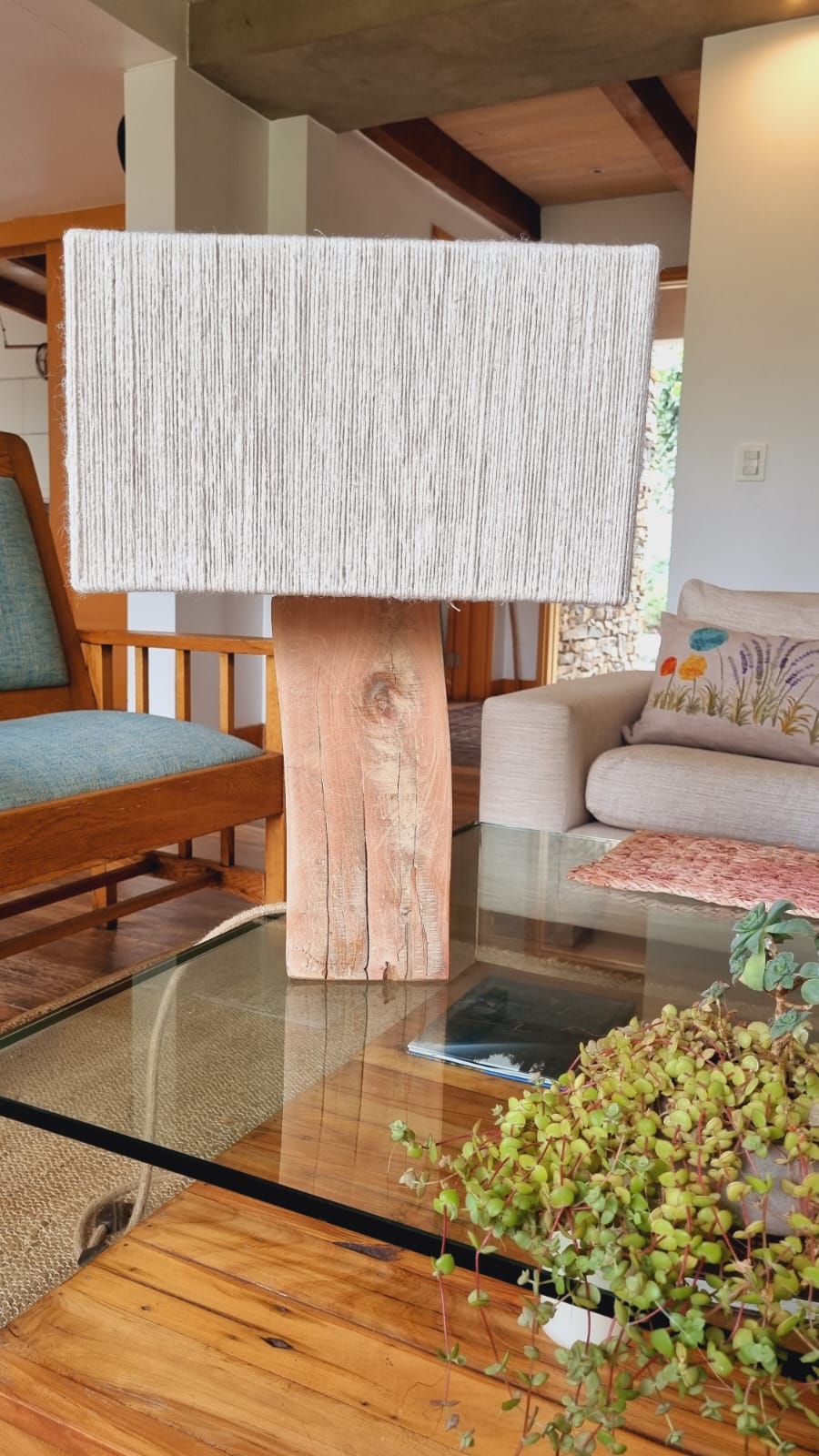 Incluye base de madera, cable forrado en yute (con interruptor y enchufe) y ampolleta